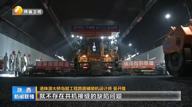 記者:“我身后就是港珠澳大橋的海底隧道,在業內,人們形象的把路面鋪裝稱之為給路面‘穿衣服’,而給港珠澳大橋海底隧道‘穿上新衣’的,正是來自陜西的一家企業。”